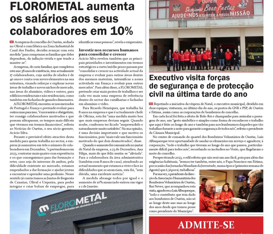 "Os colaboradores da Florometal vão receber mais 10% do seu salário em 2023, medida que visa ajudar a compensar as famílias e colaboradores que lá trabalham, aos aumentos sucessivos dos preços dos bens incenciais e da inflação."